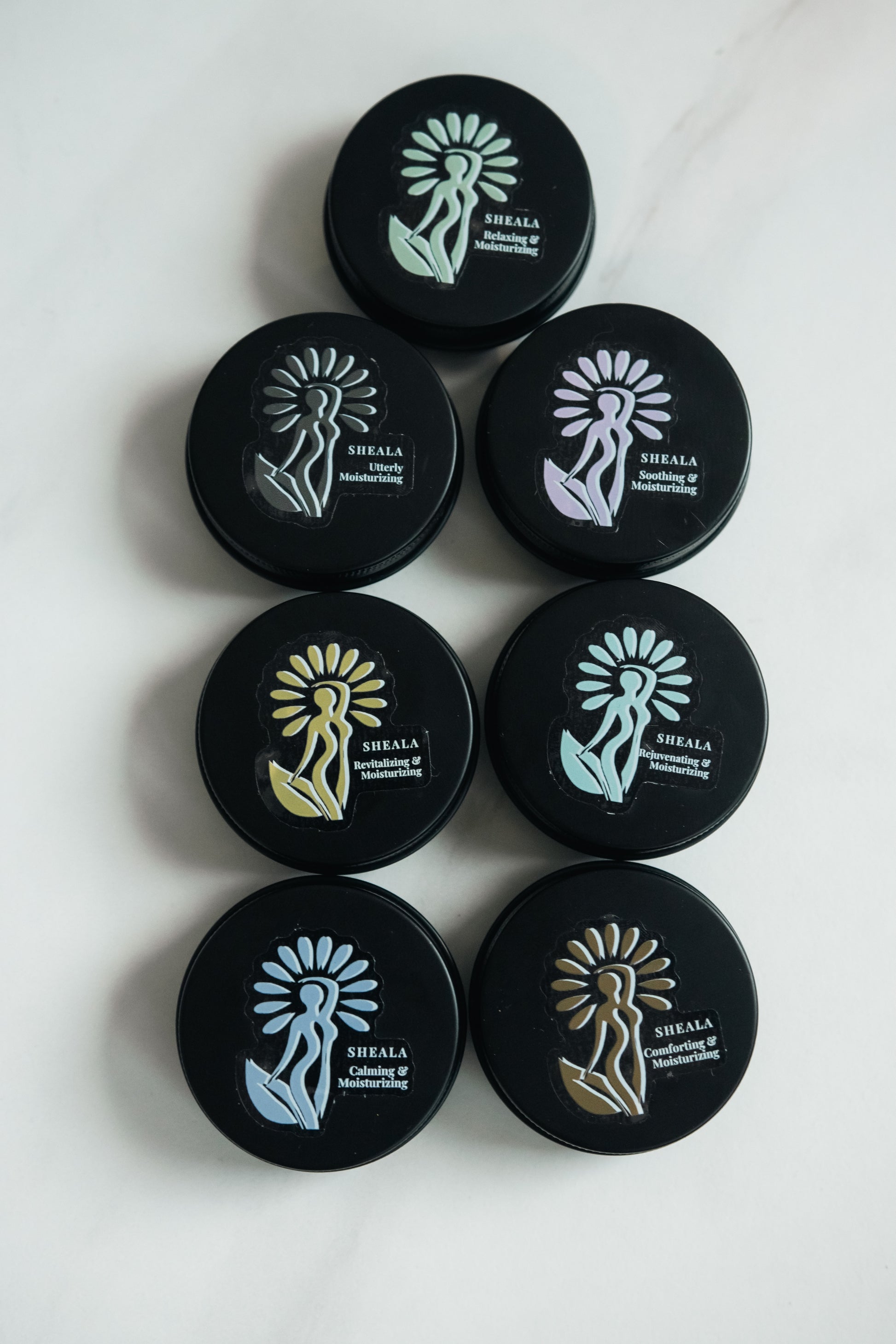 Discover our SHEALA Butter samples made with love! All 7 scents (Vanilla, Rose, Lavender, Lemongrass, Eucalyptus, Peppermint, and Unscented) are included in the sampler.