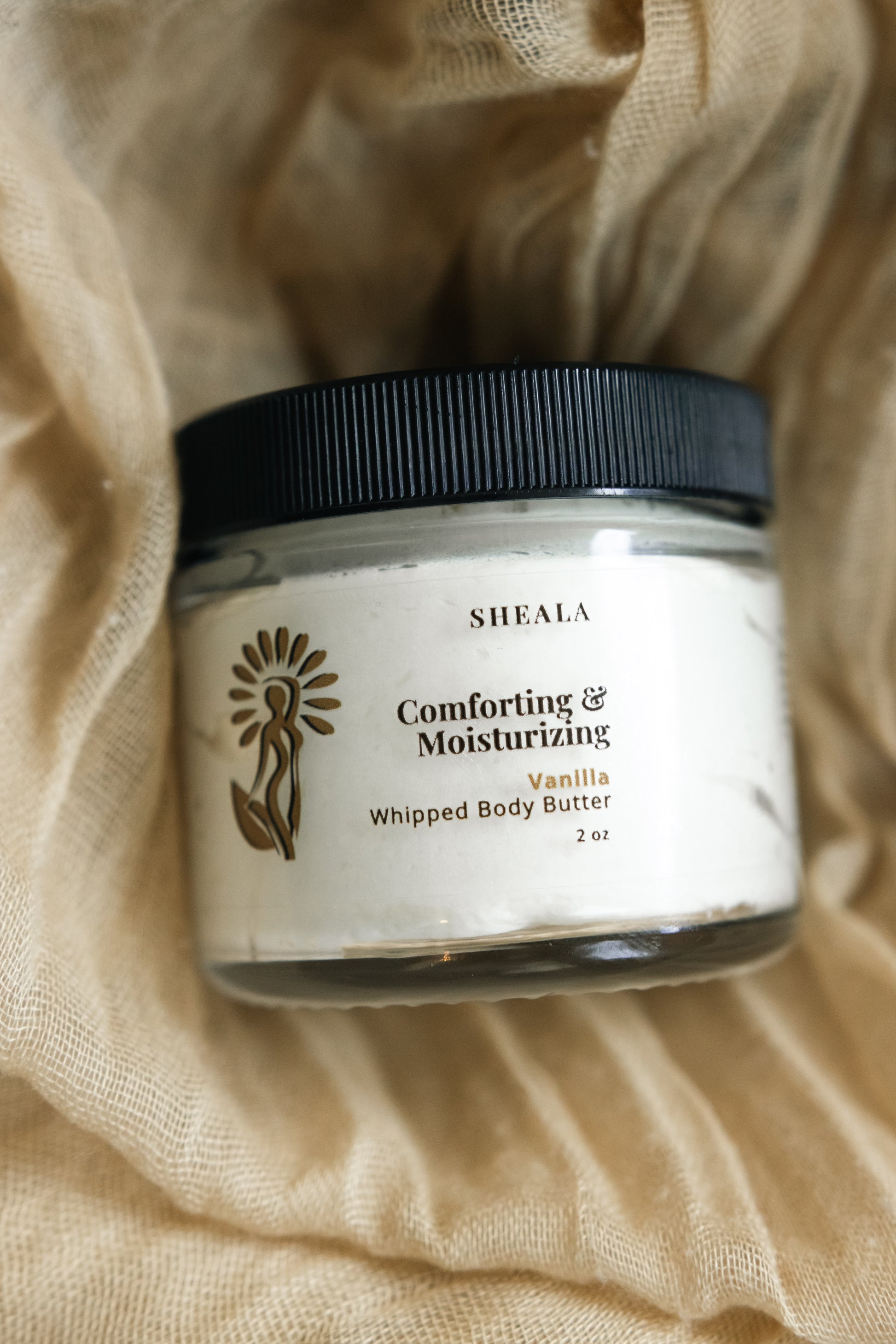 Raw Shea Butter, Organic Sweet Almond Oil, Organic Tea Tree & Vanilla Essential Oil